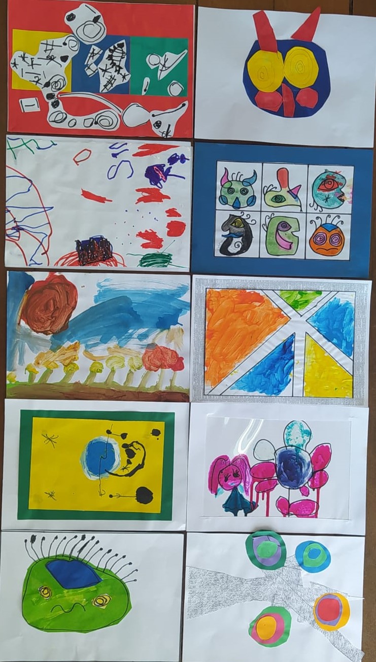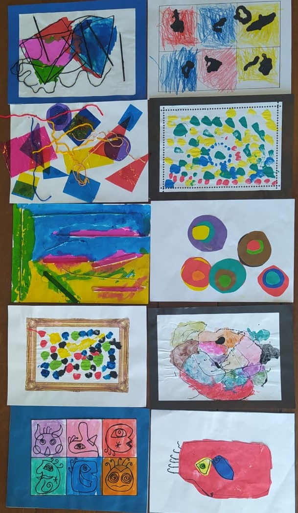 En las primeras etapas del proyecto los Horneros buscaron información sobre Kandinsky y los Benteveos sobre Miró. Conocieron parte de su vida, averiguaron qué elegían pintar, en qué se inspiraron y cómo lo hacían. Esto los motivó a experimentar con distintas técnicas y a realizar sus propias producciones a partir de las obras observadas. De esta forma el interés y la curiosidad de los niños fue creciendo.