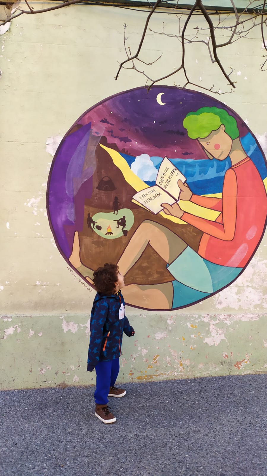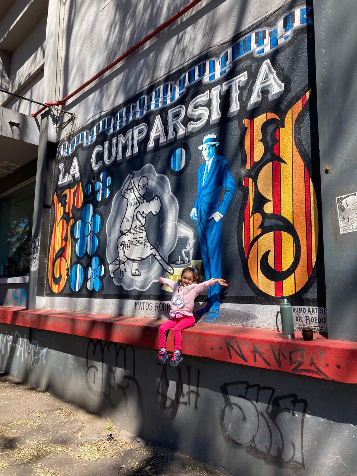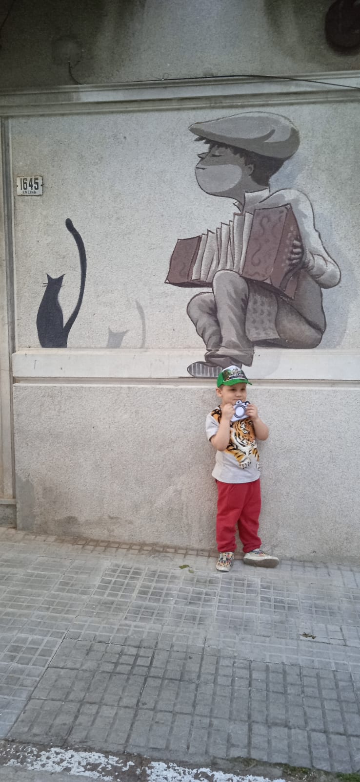 Más tarde descubrimos que el arte no solo está en los museos, sino que también está en los muros de la ciudad. Por tal motivo, mediante un recorrido virtual invitamos a las familias a hacer una cacería fotográfica de murales por Montevideo, con la consigna de descubrir el arte de nuestra ciudad y luego enviar las fotos para compartirlas en las clases y de esta forma graficar qué murales visitó cada compañero y compañera.