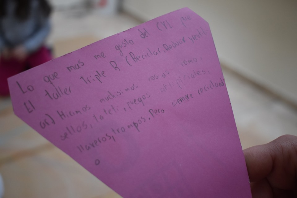 A continuación nos dirigimos hacia el roble donde practicamos algunas danzas para entrar en calor. En ese momento se dio apertura a los talleres fijos. En Espacio Retro les enseñaríamos a los niños juegos de nuestra infancia como el tetris; en la Radio Picaflor sonorizaríamos el CVL y, en el taller Triple R, haríamos manualidades con materiales reciclados o reutilizados. También se presentaron otros talleres, que dictarían integrantes invitados, como los de música, robótica o cocina. Después de un buen rato libre, fuimos a merendar. Luego iniciamos la búsqueda de la fórmula X, que consistió en encontrar diversos ingredientes para hacer un experimento que simulaba la erupción de un volcán. Fue un día espléndido y alegre para todos, el primero de esas dos movidas semanas.